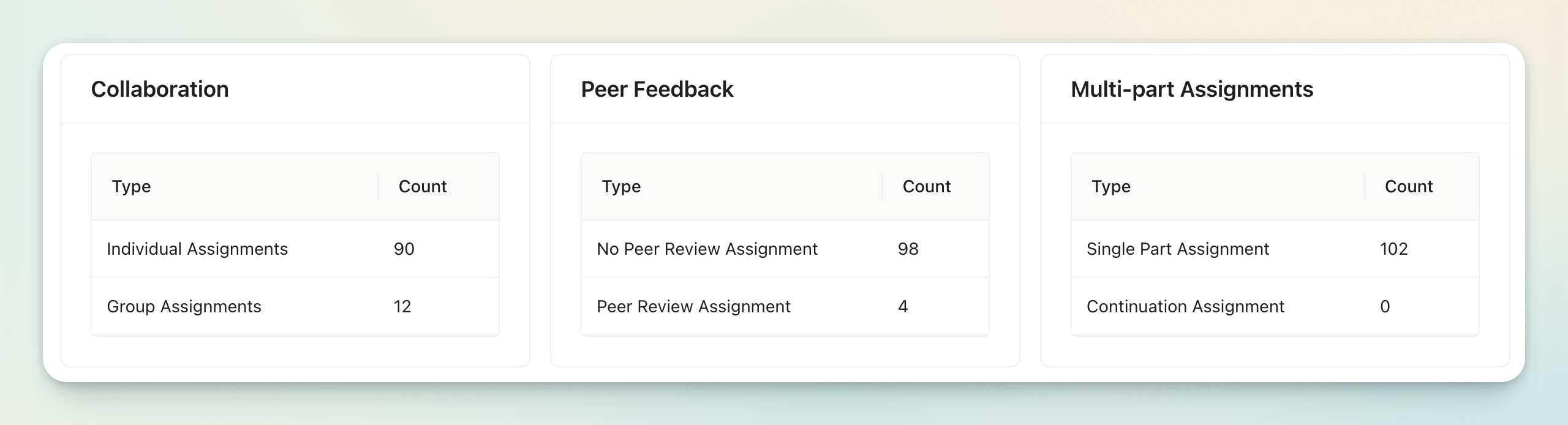 This tab dives into how AI is being used within classes, helping instructors and admins monitor patterns and evaluate the role of AI in learning.