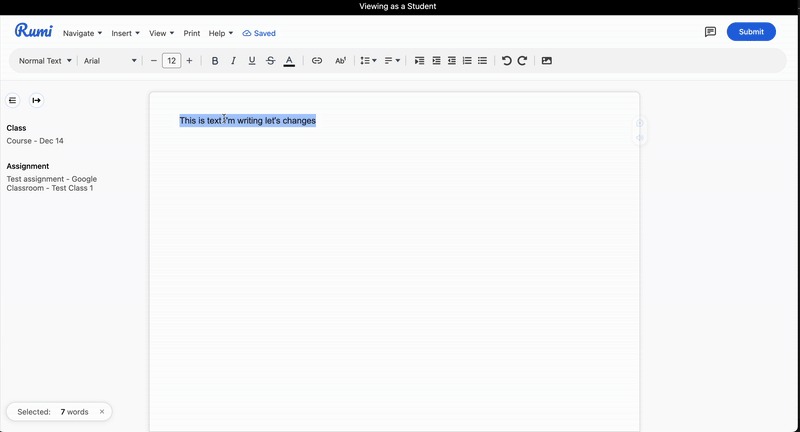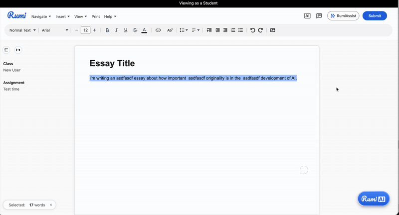 With the setting ON, attempts by third‑party tools to insert or modify text are blocked, and the student sees a clear message indicating an unauthorized edit occurred. Normal typing and Rumi actions will only continue to work after the student refreshes the page.