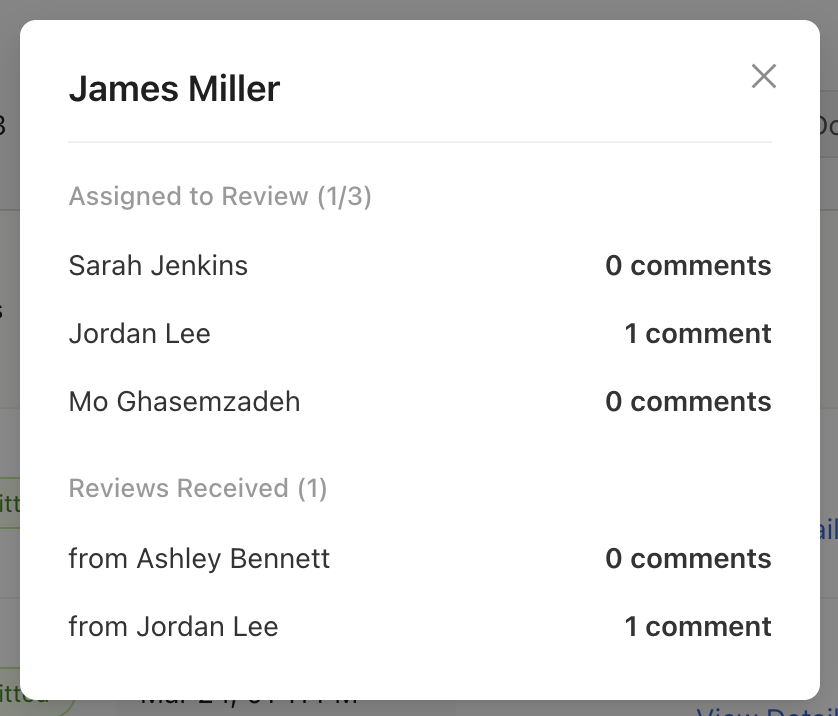 By clicking View Details, instructors can see a detailed breakdown of each student's review progress, including which papers have been reviewed and which are still pending.