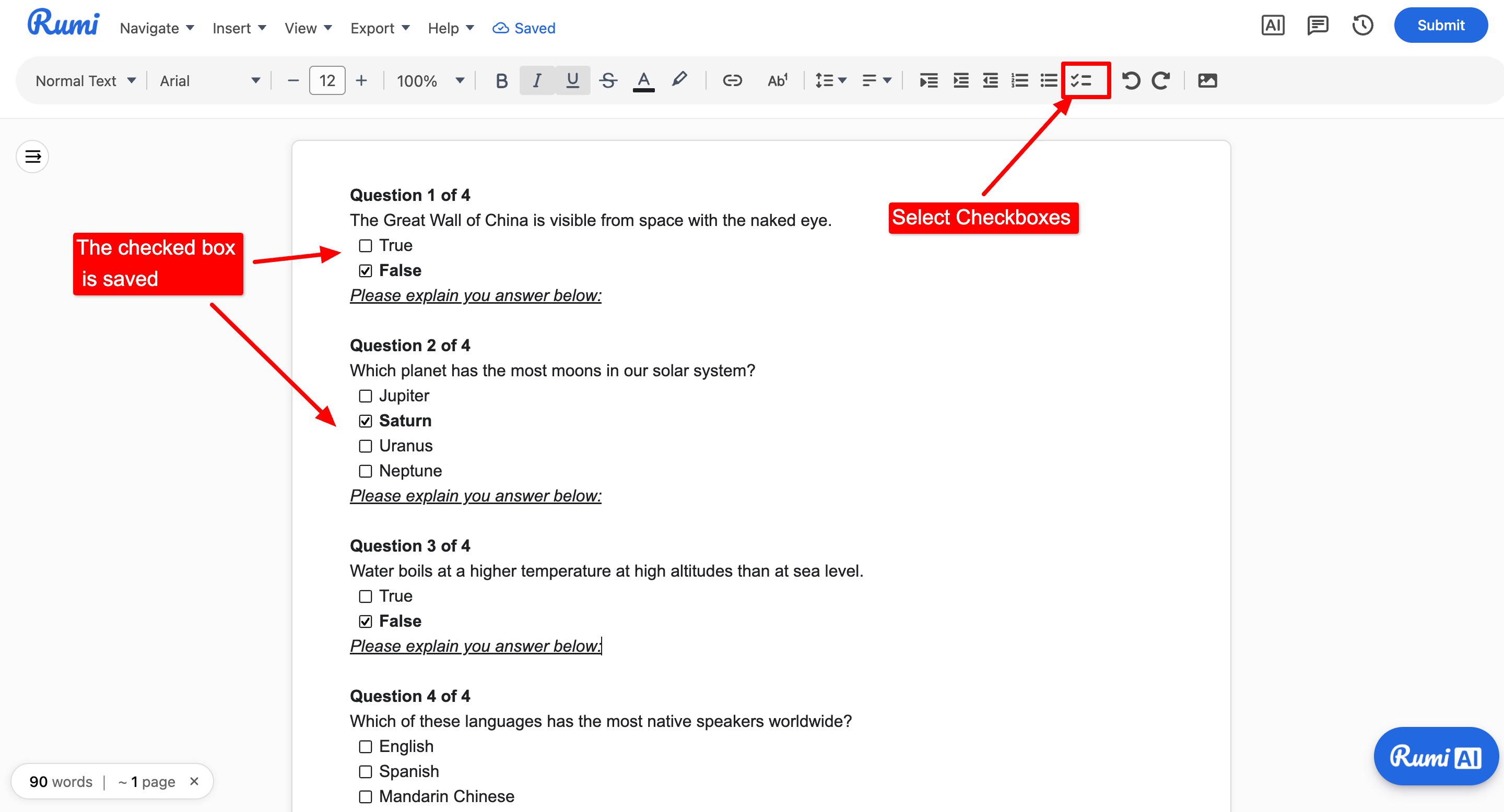 Quiz Tip: For quizzes with explanations, we recommend using the checkboxes feature in Rumi.